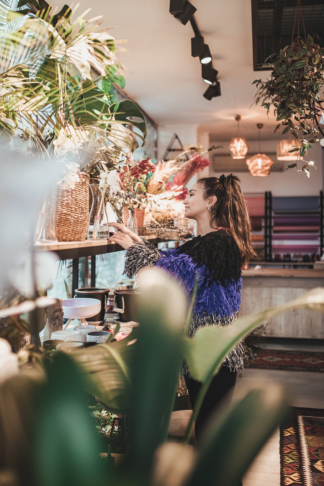 İç mekan süs bitkileri ile süslenmiş bir yaşam alanı insanları rahatlatır, mutlu...